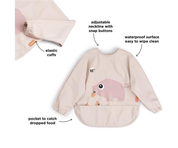 El suave babero es impermeable y tiene unas prácticas mangas elásticas para mantener seco a tu niñe. Es fácil de limpiar y te ahorrará mucho tiempo de limpieza.