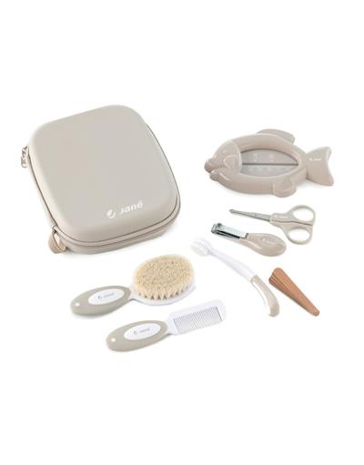 Compuesto por 1 cepillo, 1 peine, 1 cepillo de dientes, 1 tijeras de seguridad, 1 cortaúñas, 4 limas de uñas y 1 termómetro para medir la temperatura del agua.