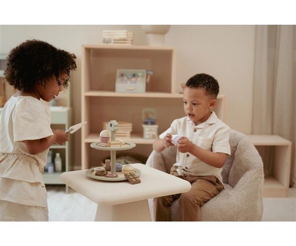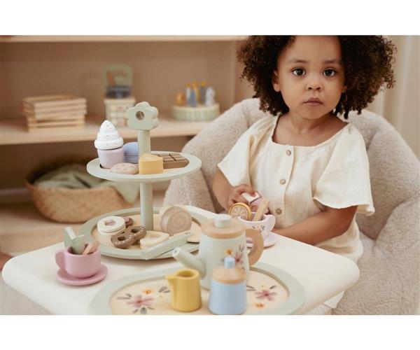 Con el encantador Soporte para Pasteles de madera FSC de Little Dutch, los peques pueden organizar su propia merienda o fiesta de té al más puro estilo tradicional. Este soporte de tres niveles incluye dulces de juguete irresistibles: muffins, galletas y macarons de colores listos para servir.