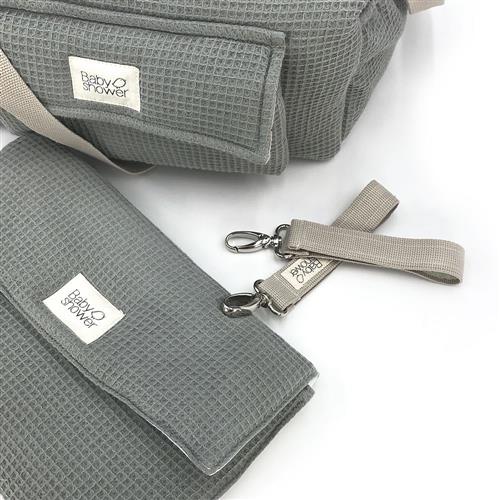 Bolso para carrito de amplio tamaño para poder salir equipados a dar un paseo. Con múltiples bolsillos para ordenar todas vuestras cosas. Se podrá adaptar tanto al carrito como para llevarlo colgado del hombro. Incluye un cambiador de paseo acolchado.