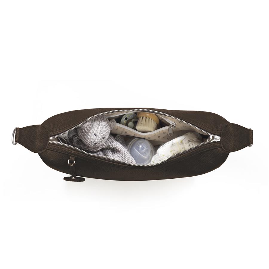 Bolsa Bandolera Góndola London Brown de Pasito a Pasito.Diseño compacto y ergonómico:Cuenta con un compartimento principal que te permite acceder a todo fácilmente que incluye un bolsillo lateral con cierre de cremallera. su distintiva forma de medialuna en polipiel granulada marrón con estrellas ofrece un look contemporáneo y se adapta cómodamente al cuerpo o al carrito.Bandolera ajustable: llévala cómodamente cruzada o al hombro gracias a su tira regulable con mosquetones, adaptándose a tu altura y preferencia. Enganches para carrito: equipada con mosquetones robustos para colgarla de forma segura y práctica en el manillar de cualquier silla de paseo o carrito de bebé. Es la solución ideal cuando no necesitas llevar una bolsa grande, pero quieres tener a mano lo indispensable para ti y tu bebé.