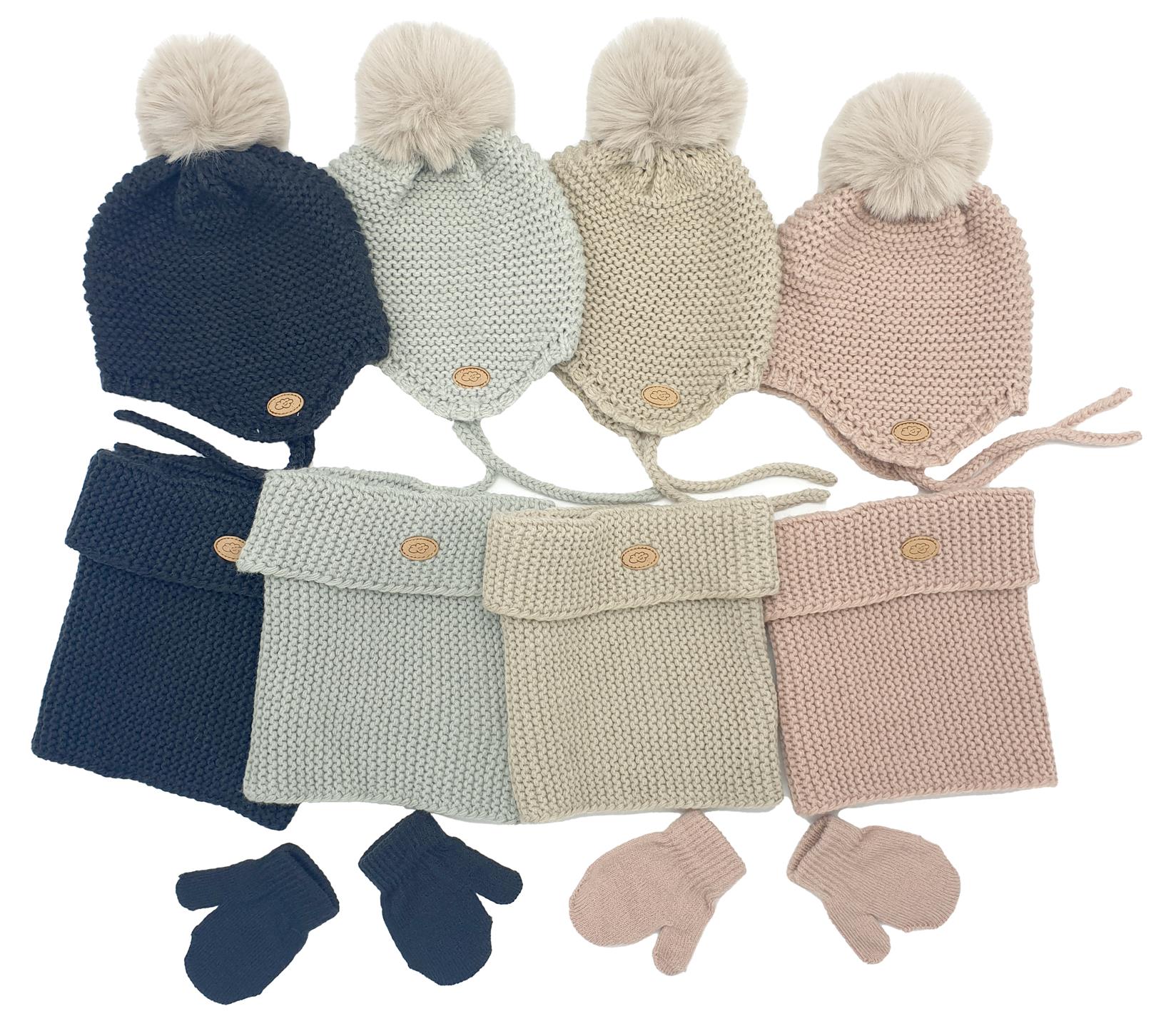 Conj.3 pzas.:Gorro, cuello recto y manoplas