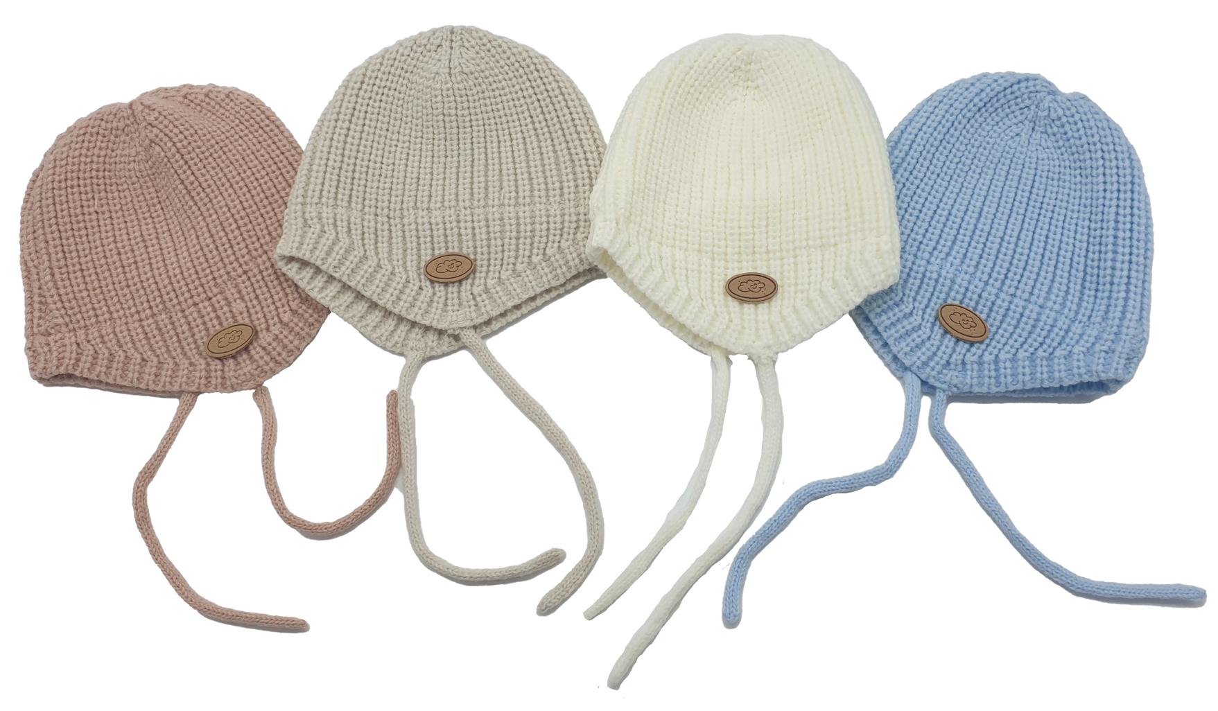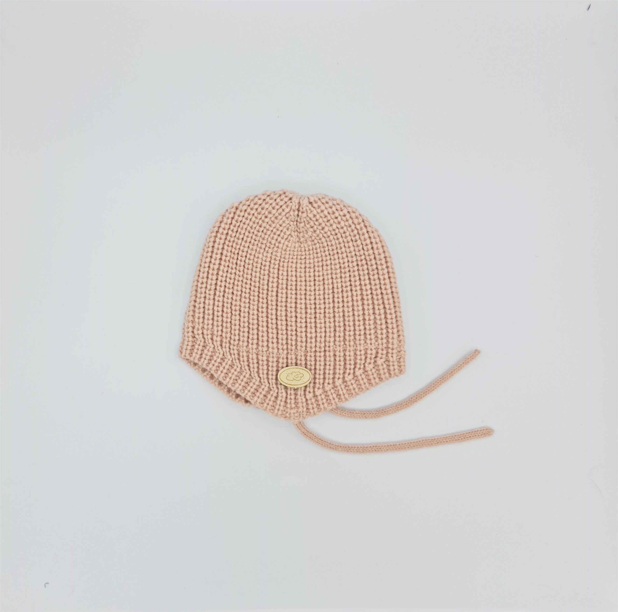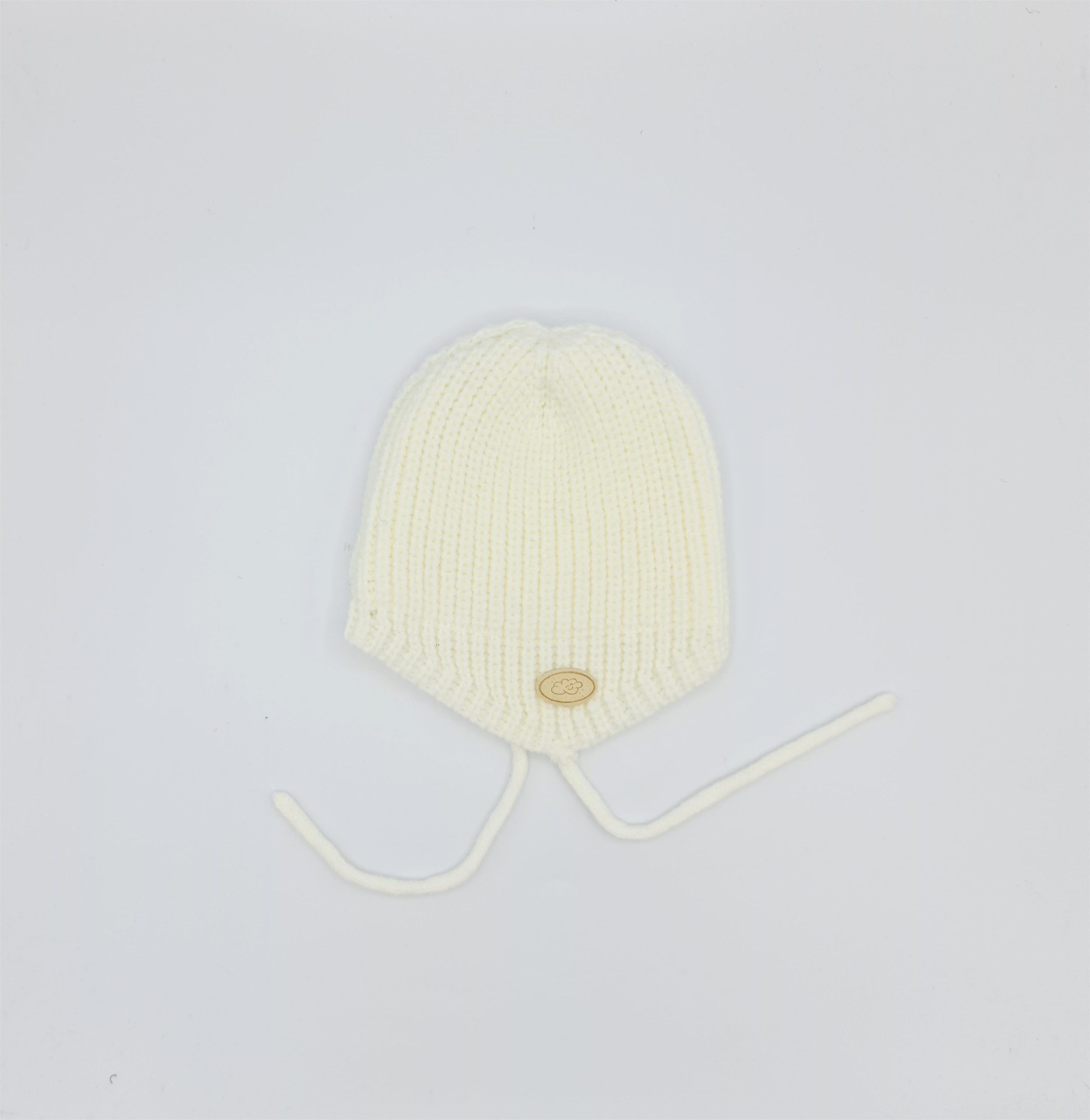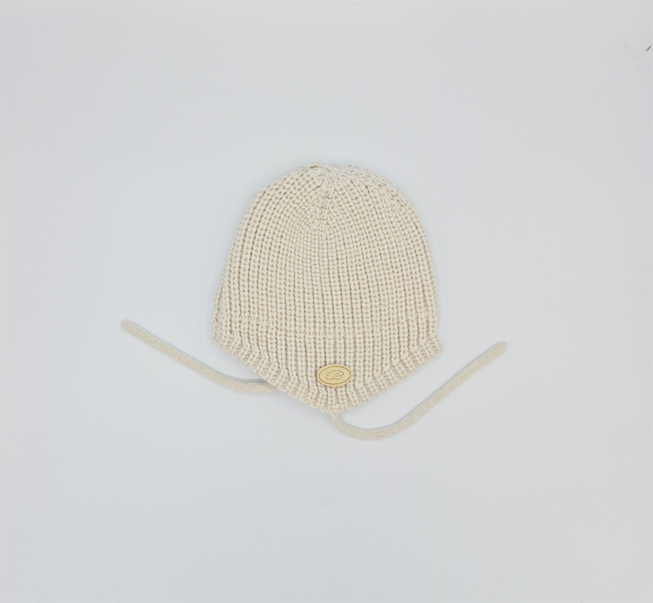Gorro primera puesta. Canalé punto grueso con orejeras.